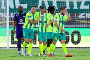 H αναμέτρηση ξεκίνησε με τον χειρότερο τρόπο για την ΑΕΚ καθώς στο 8ο λεπτό βρέθηκε πίσω στο σκορ μετά το γκολ του Mccausland για τους φιλοξενούμενους. Η ΑΕΚ αντέδρασε άμεσα, με τον Rohden να κερδίζει πέναλτι μετά την ανατροπή του από τον Χαραλάμπους και τον Μilicevic να εκτελεί εύστοχα και να ισοφαρίζει στο 13ο λεπτό. O Ivanovic είχε καλή στιγμή (22') και στο 26ο λεπτό και πάλι ο Σέρβος μεσοεπιθετικός με εξαιρετικό σουτ έστειλε την μπάλα στα δίκτυα και έδωσε το προβάδισμα στην ΑΕΚ.