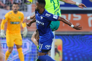 Στο πρώτο ημίχρονο η ΑΕΚ ανέλαβε την πλήρη πρωτοβουλία των κινήσεων, απείλησε αρχικά με Angielski (13'), ενώ στην συνέχεια είχε δύο δοκάρια με Ivanovic (20') και Angielski (26') και καλές στιγμές με Ivanovic (28'), με το πρώτο ημίχρονο να ολοκληρώνεται χωρίς τέρματα (0-0).
