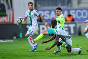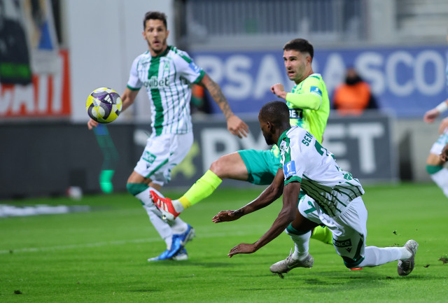 Μετά τα αναγνωριστικά πρώτα λεπτά, η ΑΕΚ ανέλαβε την πρωτοβουλία των κινήσεων και είχε την πρώτη μεγάλη φάση, με το κάθετο δοκάρι να σταματά το σουτ του Amyn (14'), ωστόσο στο 29ο λεπτό βρέθηκε πίσω στο σκορ με τον Μασούρα να σκοράρει για τους φιλοξενούμενους. O Cabrera (37') είχε την τελευταία καλή στιγμή στο πρώτο μέρος.